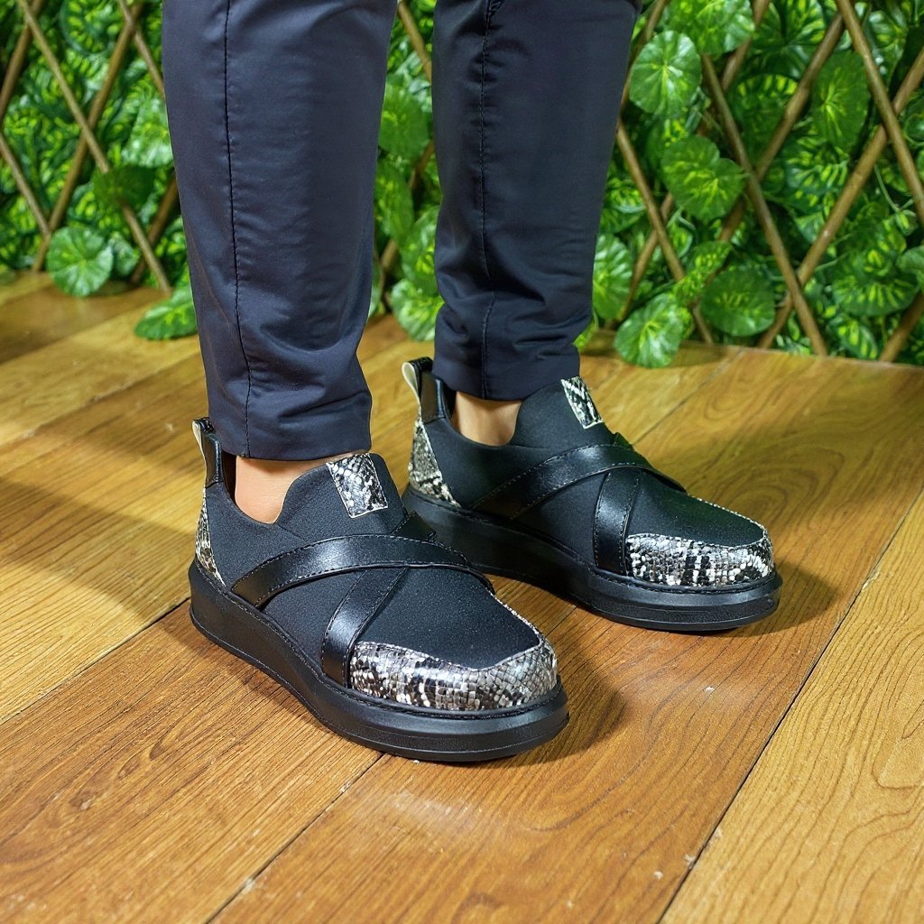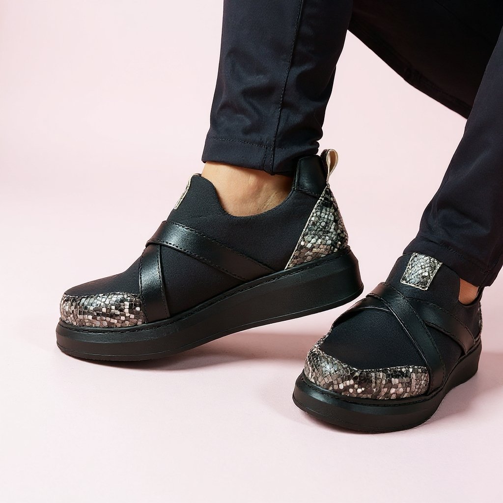 Atout majeur : Un mélange de textures qui capte la lumière et souligne le caractère unique de la chaussure.